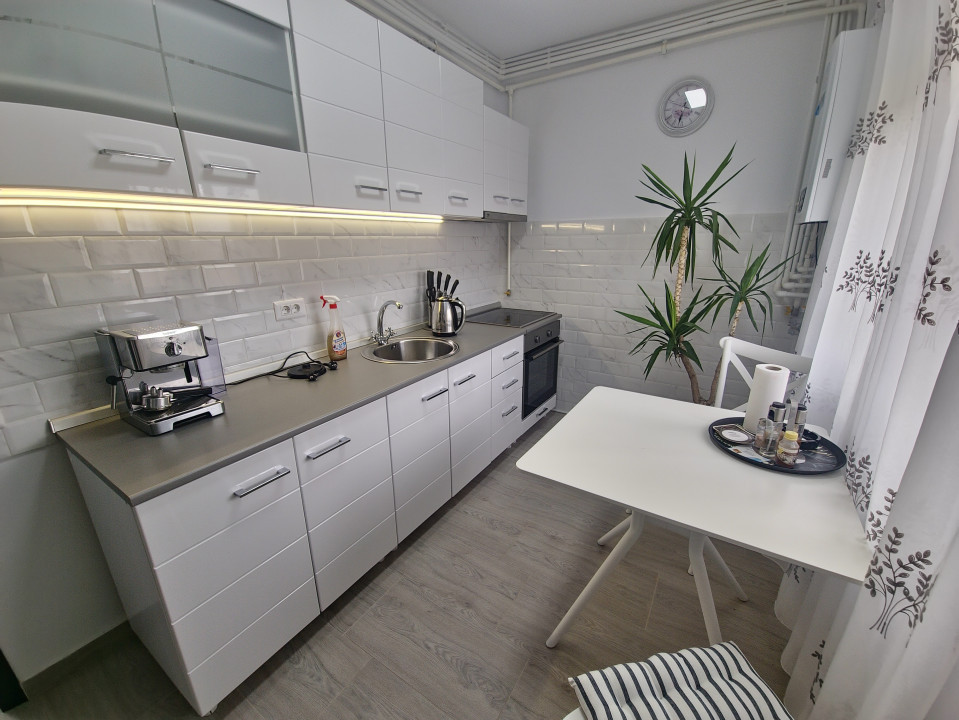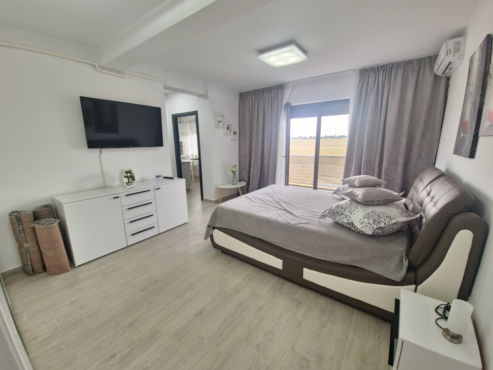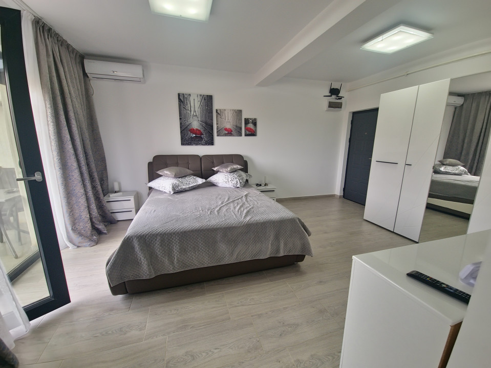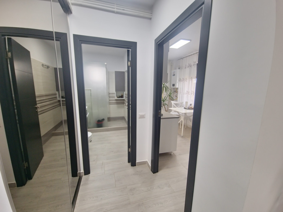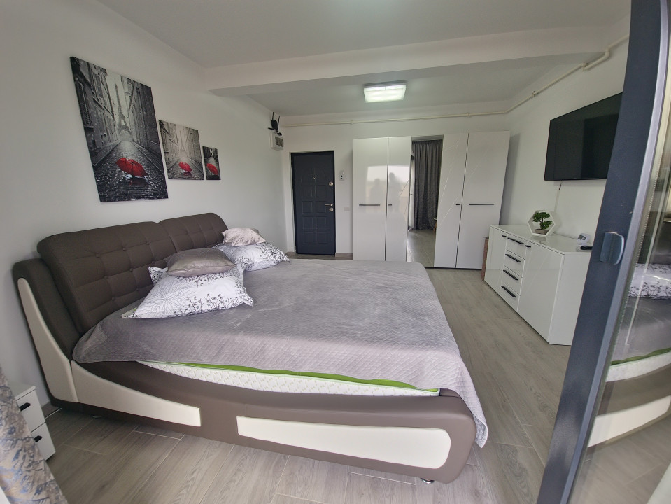 Acesta este complet mobilat și utilat modern, având o bucătărie separata complet echipată, baie cu duș,aparat de aer conditionat , tv, și încălzire în pardoseală pentru un confort sporit. Garsoniera include și un loc de parcare privat, accesul în cartier este dotat cu bariera .