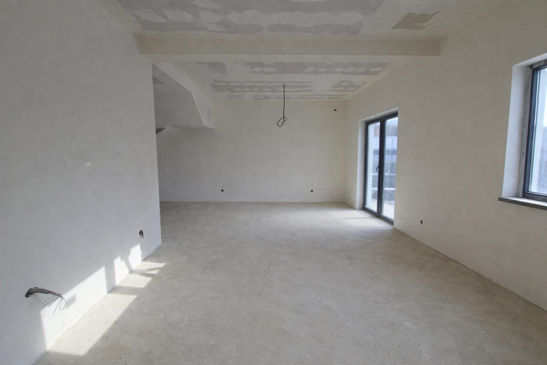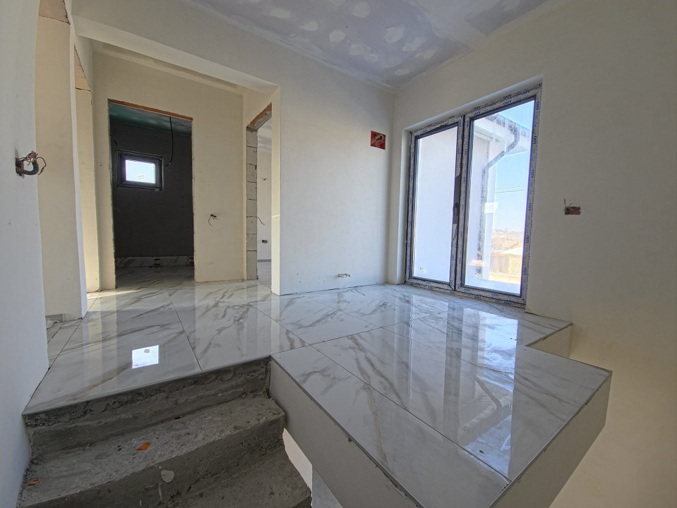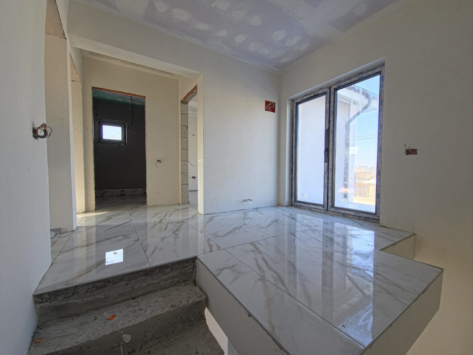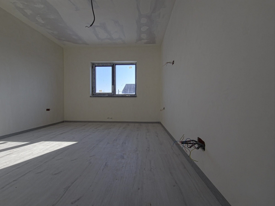Casa se predă la cheie, cu toate utilitățile trase, instalații electrice și sanitare complete, finisaje atent realizate, balustradă din sticlă securizată la terasă și suprafețe vitrate mari pentru lumină naturală optimă.