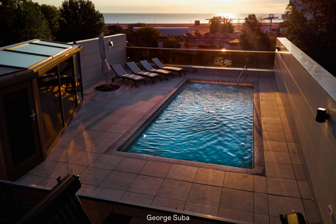 • Piscina 9.00m/3.80m – h 1.5m – cu pompa de caldura, hidromasaj si leduri nocturne
