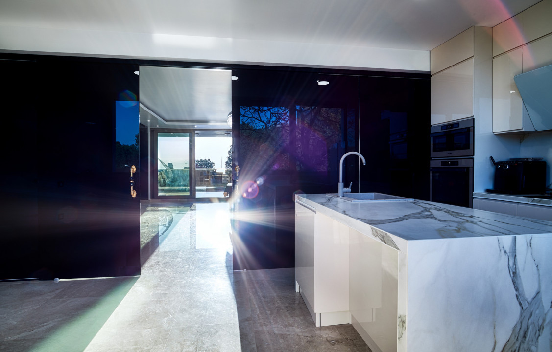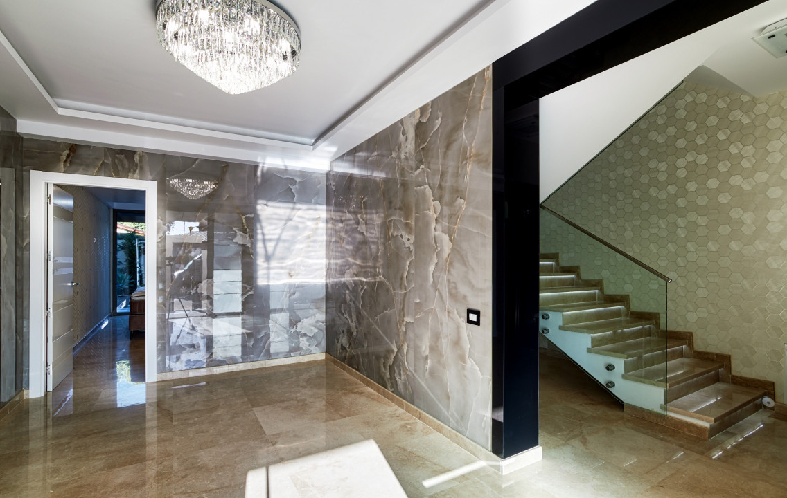 O vila facuta sa impresioneze prin estetica fina si designul modern. De la dotarile tehnice menite sa-i ofere sustenabilitate si un coeficient termic scazut pana la detaliile delicate ale tapetului ales si culminand cu petreceri la piscina de pe acoperisul terasat, este greu sa-i gasim concurenta.
